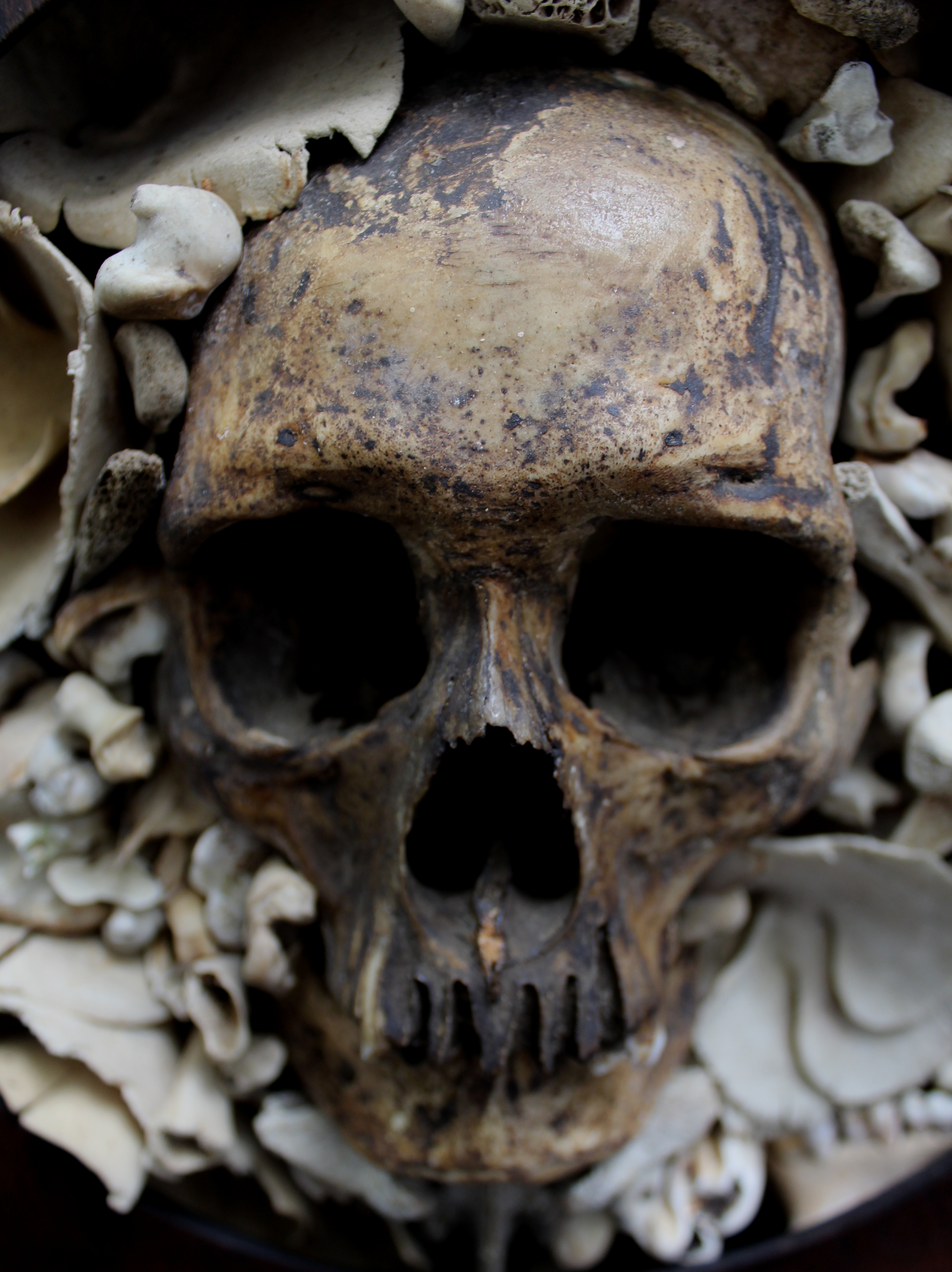 One well-known exception is the famous ossuary chapel at Sedlec in the Czech Republic. In the 17th Century woodcarver František Rint used human bones and skulls at Sedlec to make all sorts of decorative sculptures. Mostly they paid homage to the Schwarzenburg family who owned the ossuary – or to himself!