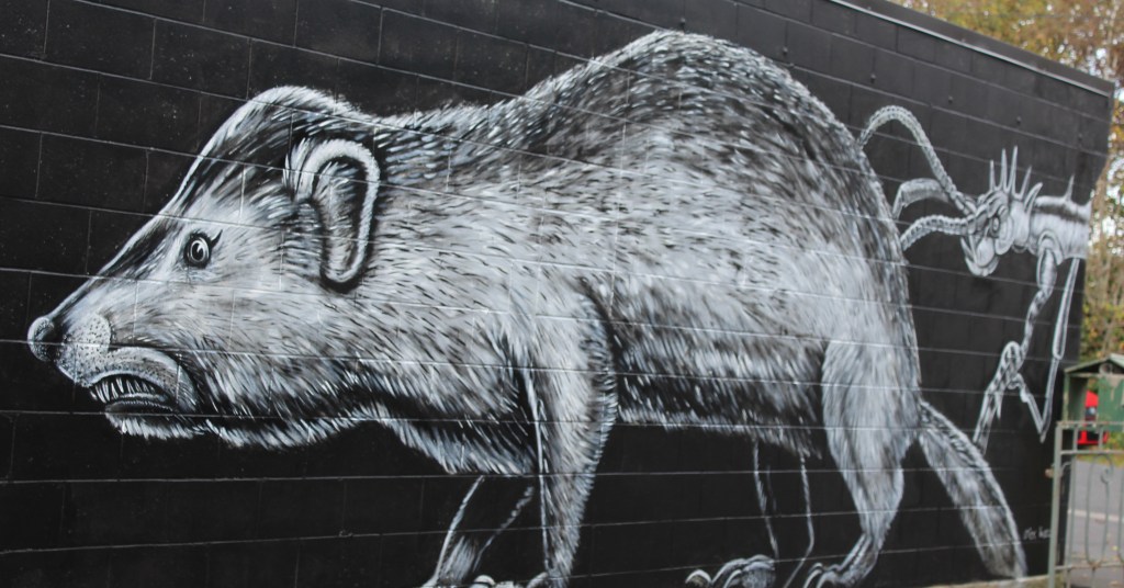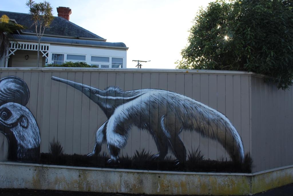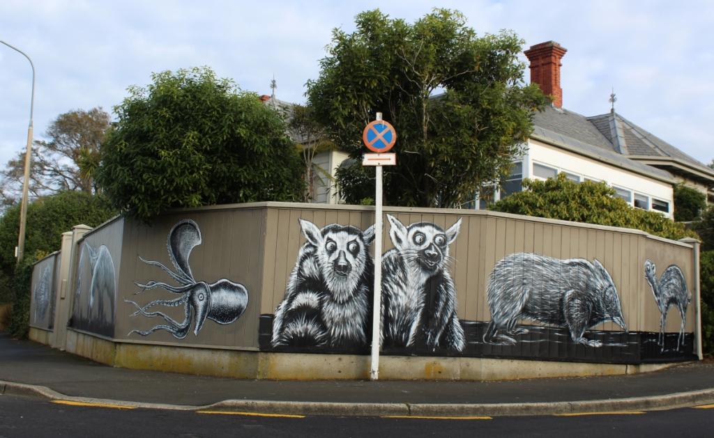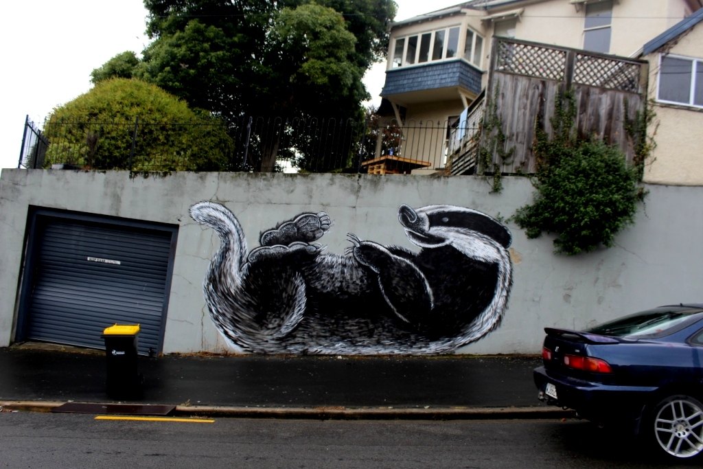 5) Royal Terrace Badgers – Two badgers just down from the Dunedin Museum of Natural Mystery at 61 Royal Terrace. My father really loved badgers. This little mural is for him.