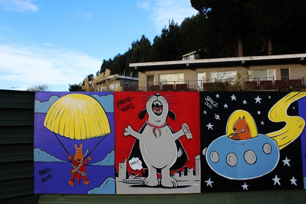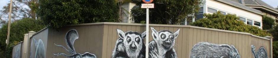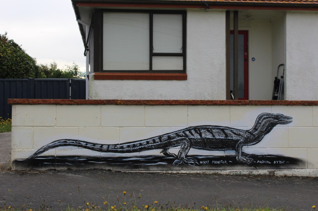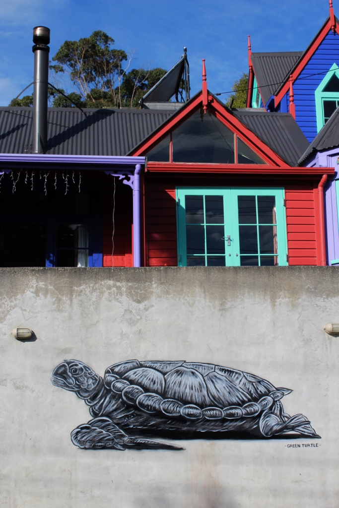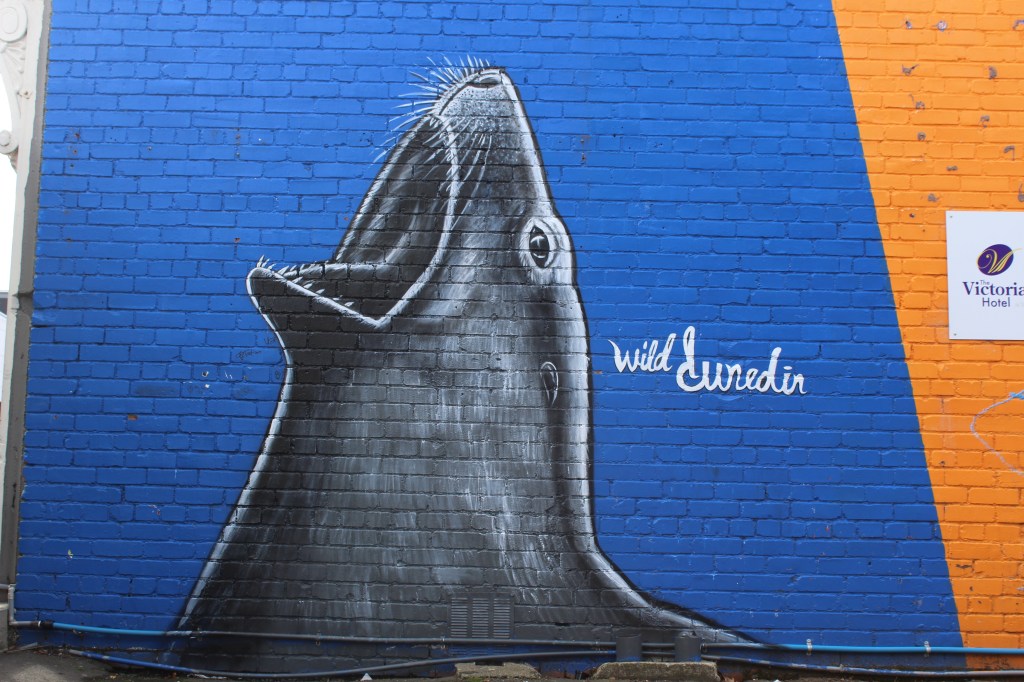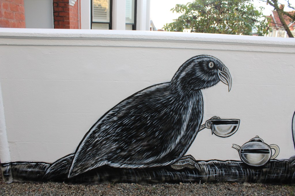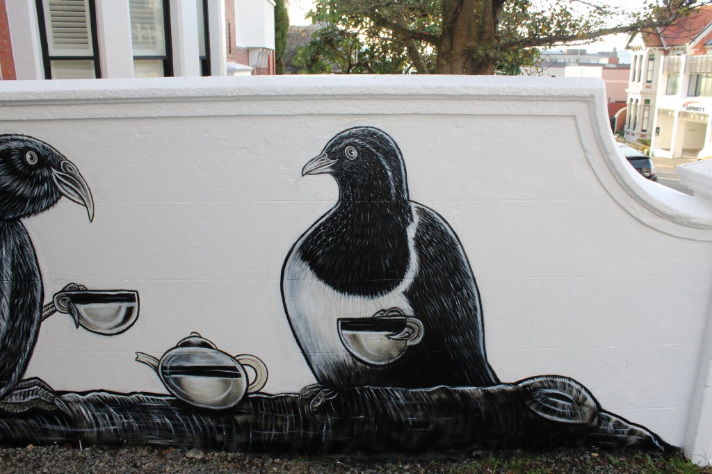 Since I moved back to Dunedin in 2017 I’ve painted over forty wall paintings around the city. Most are quite small but there are one or two bigger ones. I thought I might try to put a photo of each of them up here on my blog in the order I did them. I’m only including ones I’ve done under my own name (and not my alter-ego) and which are outside and not on interior walls. Here’s a link to the recent paintings and interior walls. I’m also not including the ones I’ve painted outside Dunedin since I moved back.
