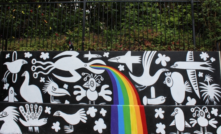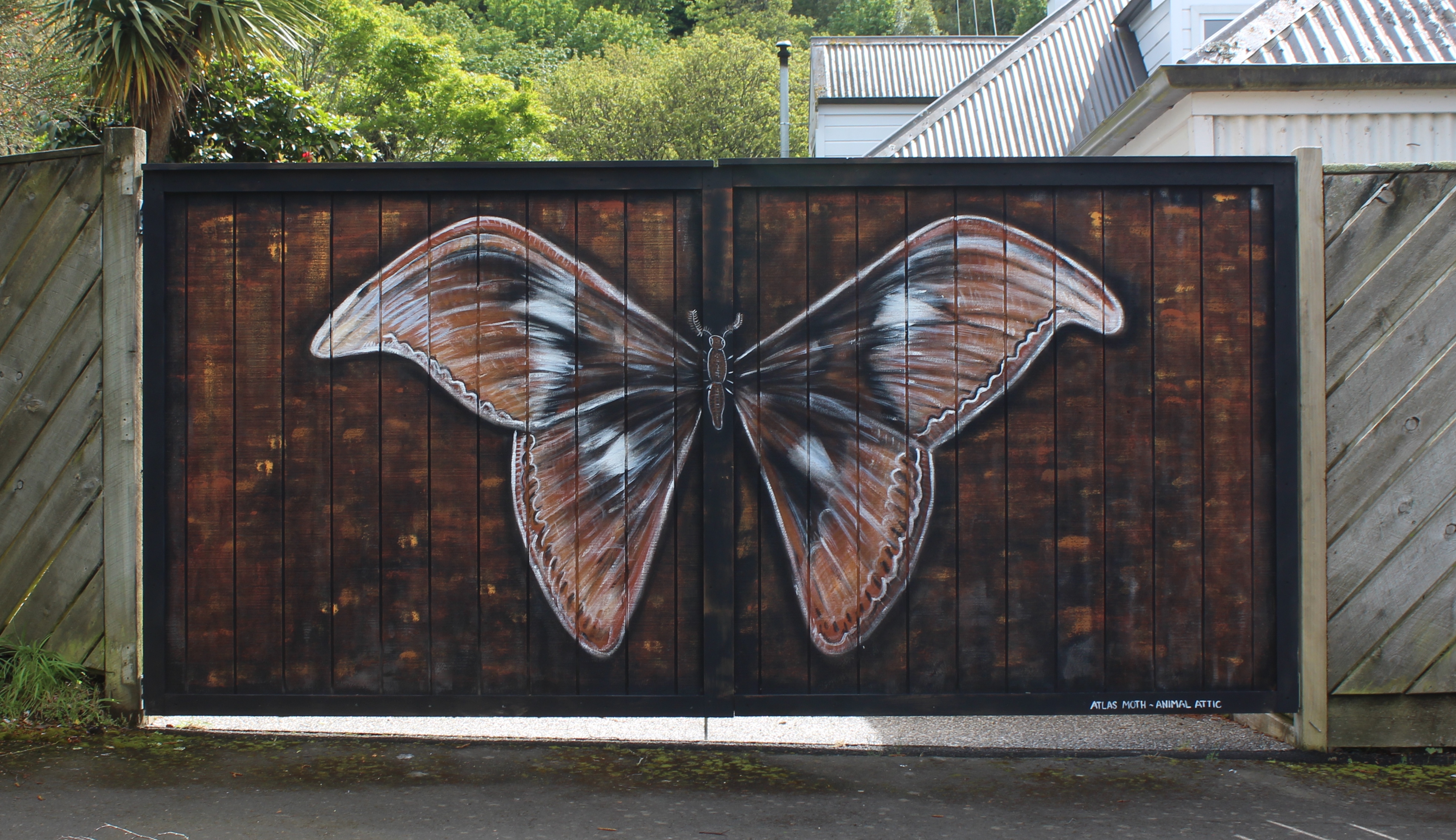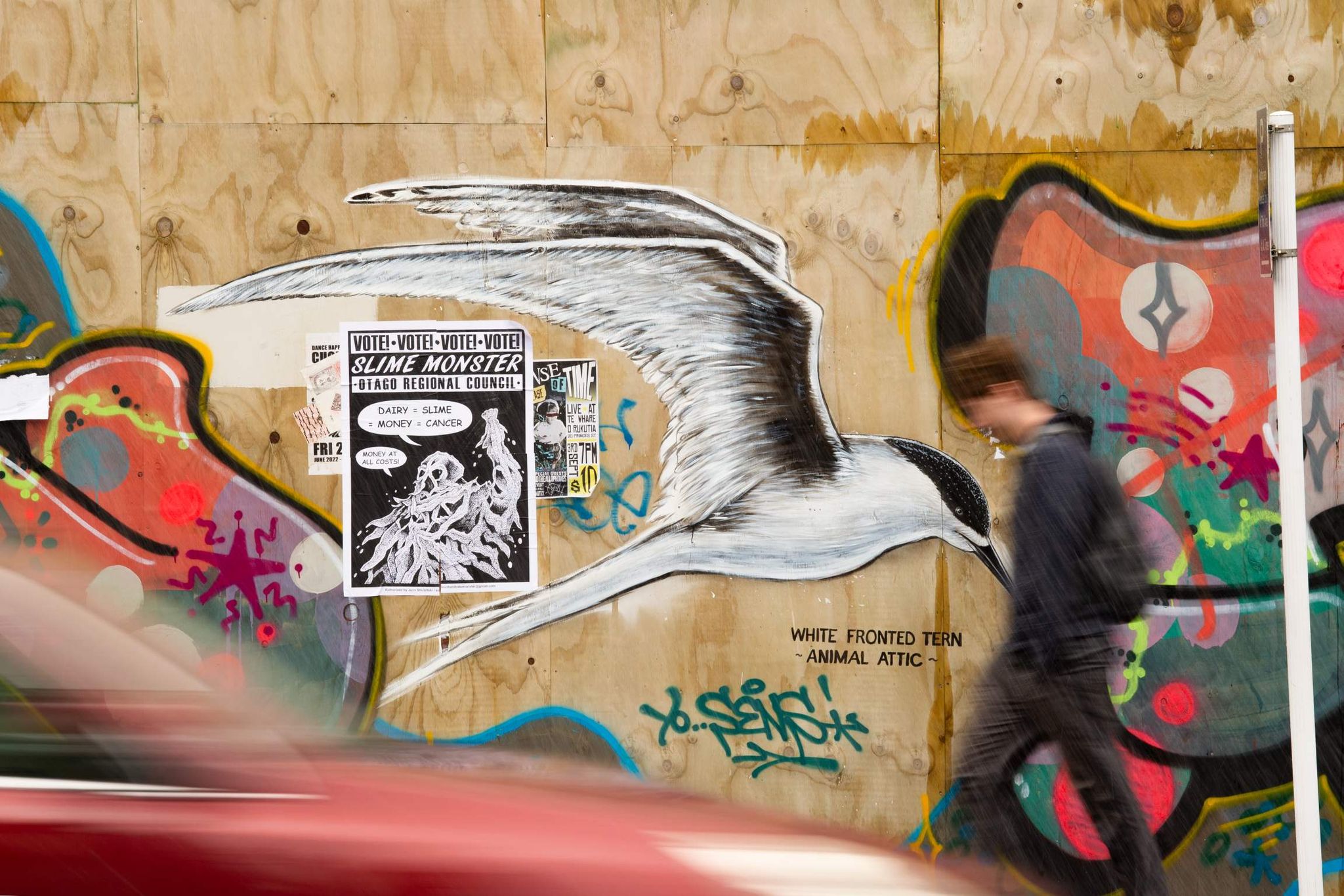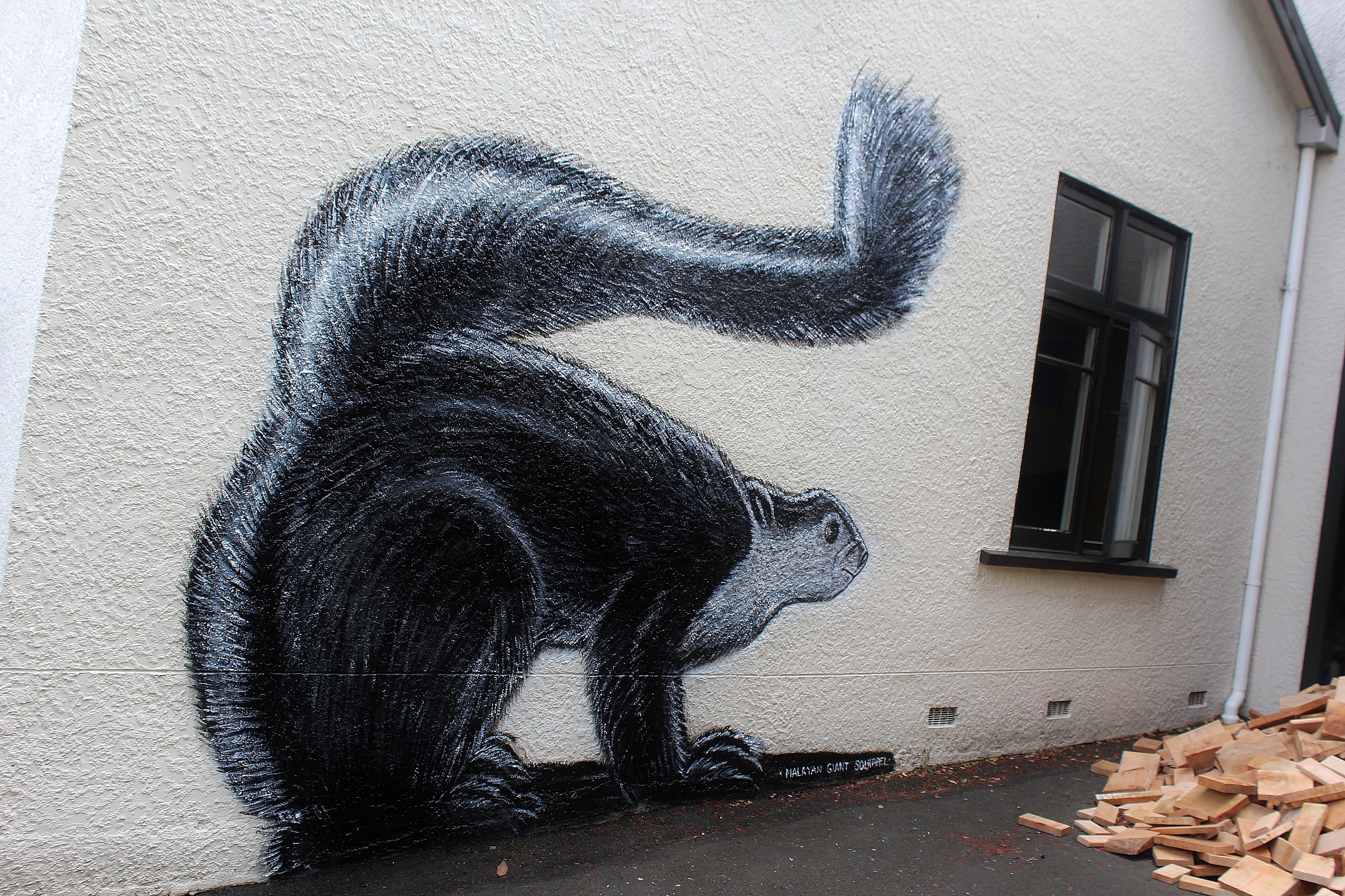 Since I moved back to Dunedin in 2017 I’ve painted over forty wall paintings around the city. Most are quite small but there are one or two bigger ones. I thought I might try to put a photo of each of them up here on my blog in the order I did them. I’m only including ones I’ve done under my own name (and not my alter-ego) and which are outside and not on interior walls. Here’s a link to the recent paintings and interior walls. I’m also not including the ones I’ve painted outside Dunedin since I moved back.