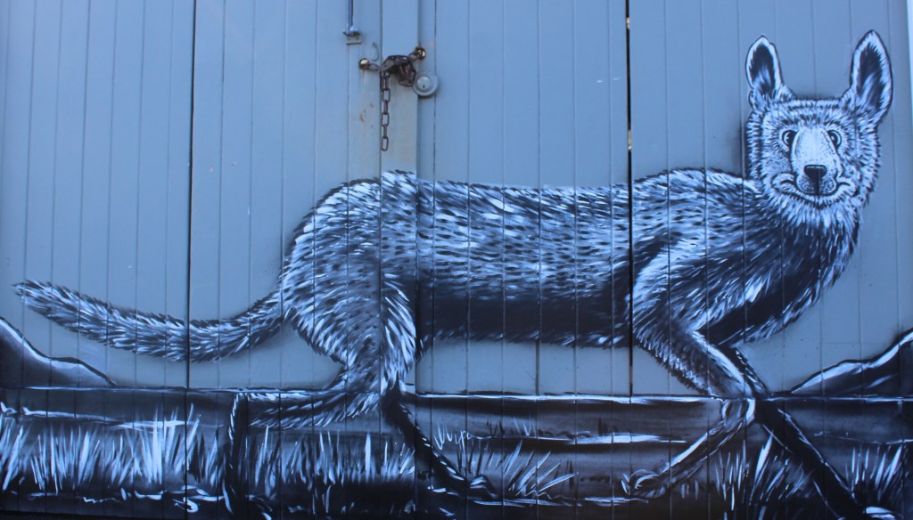 16) Bengal Fox – another animal from the Animal Attic. A private commission on the side of a garage in Roseneath. November 2020.
