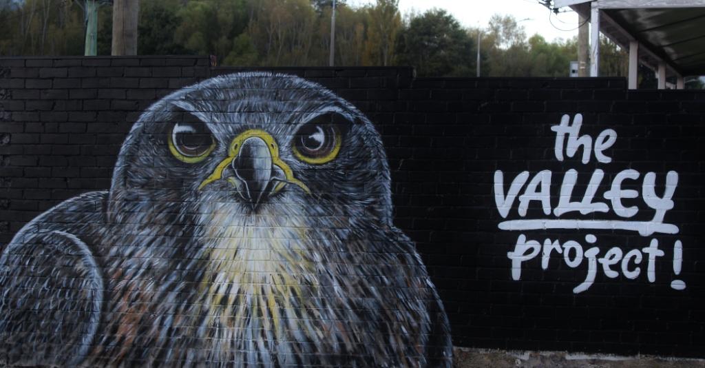 20) A Karaerea (native falcon)painted on a brick wall for The Valley Project in North East Valley. March 2021.