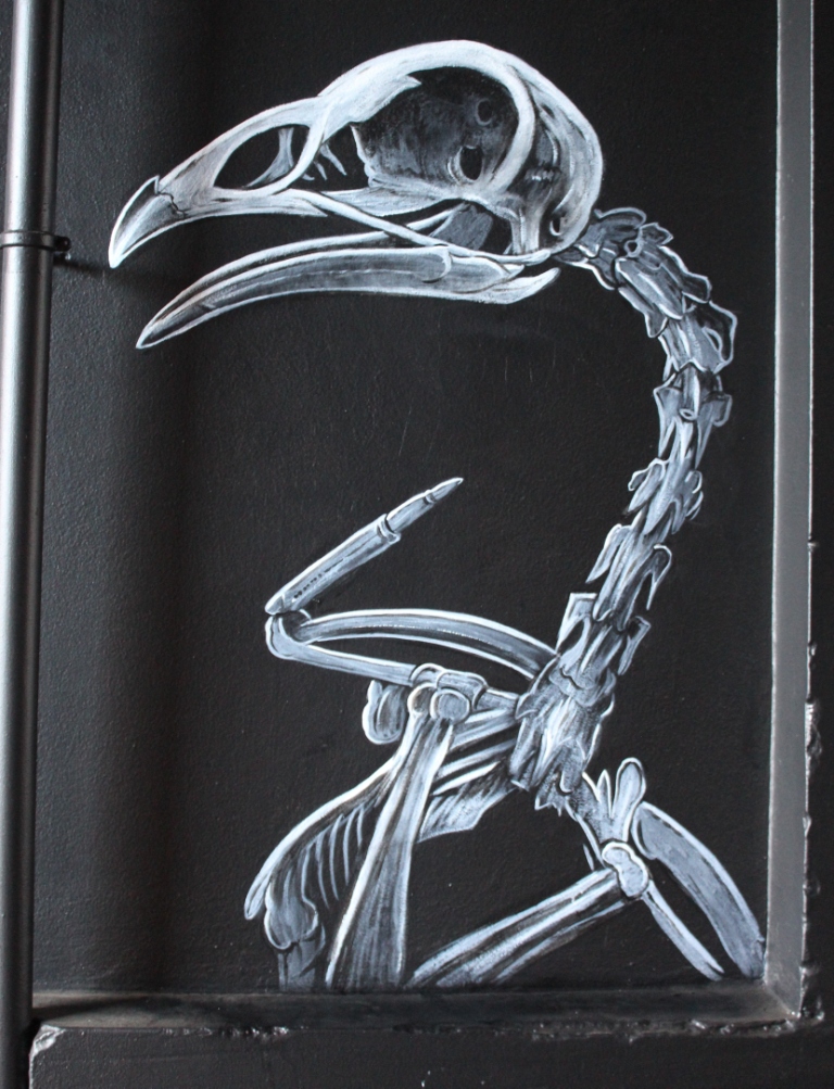6) This Chinese Ferret Badger was the first painting in my now ongoing series of small wall paintings inspired by the exhibits at the Animal Attic at Otago Museum. This is one of my favorite places in the whole world and my own museum is partly a tribute to it. It’s like stepping back into an old Victorian Museum. With each painting I have to strike a balance between being true to the antique stuffed animal and making it look life-like. There’s also the head of a stick insect because the home owners who commissioned it really like stick insects. Painted in May 2018.