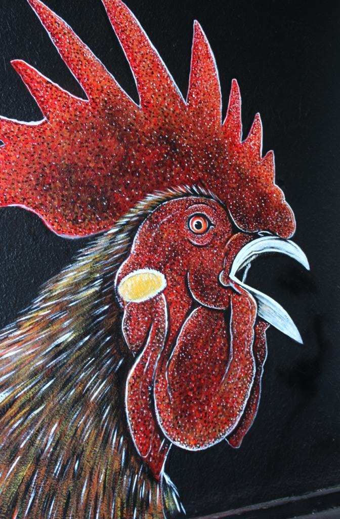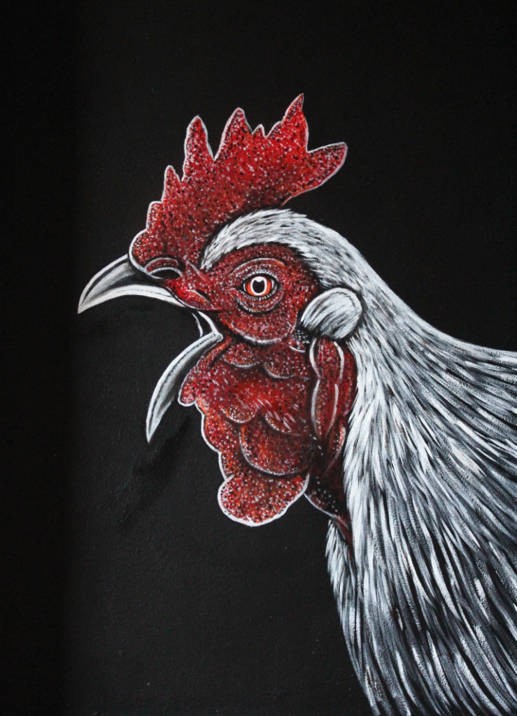 22) Screaming Roosters for the Screaming Rooster Cafe and Bar at 9 Stafford Street. They’re in the alley way beside the entrance to the gallery/bar.