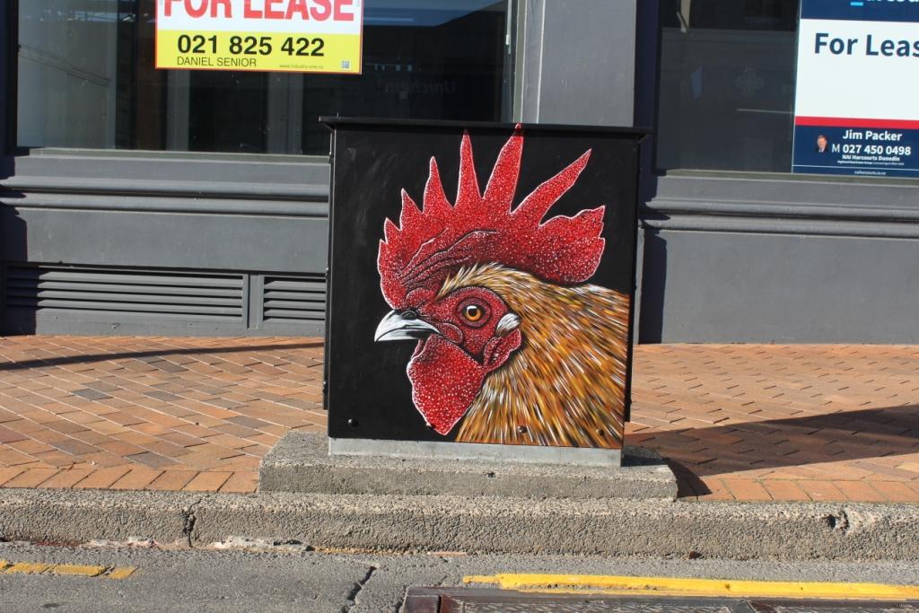 3) This chicken is on the corner of Fredrick and George Street. It was commissioned by the DCC and Chorus and was painted in February of 2018. It was tagged last week but I managed to clean it off OK.
