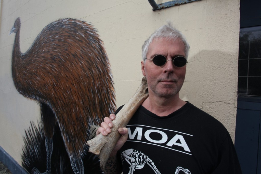 43. A South Island Giant moa(Dinornis robustus) on the north end of Bill Brosnan’s ‘Galaxy Books – December 2022. Second photo of myself holding a moa bone by Simon Clayton Photography.