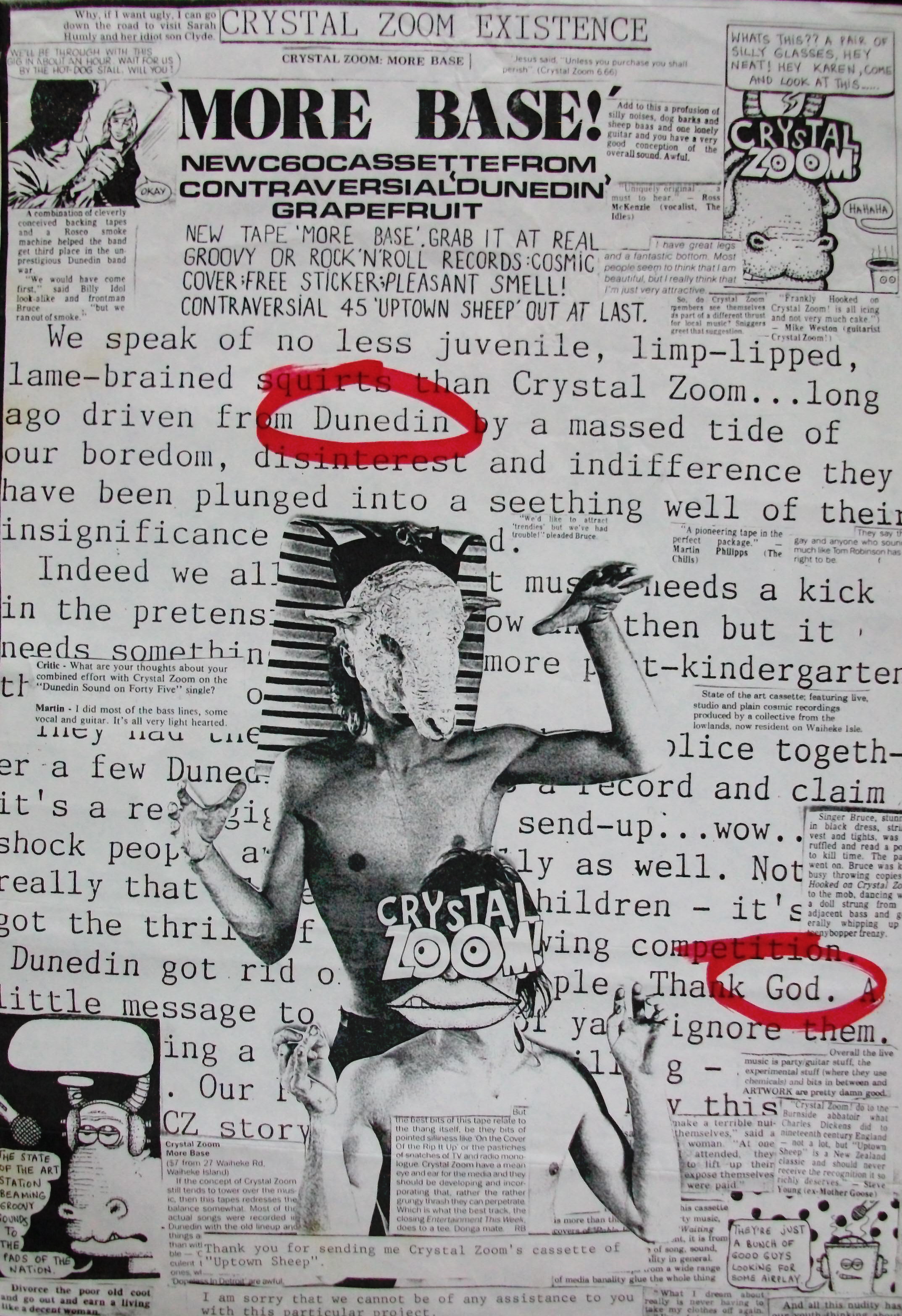 The first evidence was a nasty little article in the first issue of ‘Garage’ Magazine called ‘The Crystal Zoom Existence’. It didn’t even mention the music except for “Dunedin Sound on 45’ which it warmly (and truly) described as ‘post-kindergarten’. It even said Dunedin had ‘got rid’ of us like we’d been tarred and feathered and dropped off at the beginning of the motorway.
