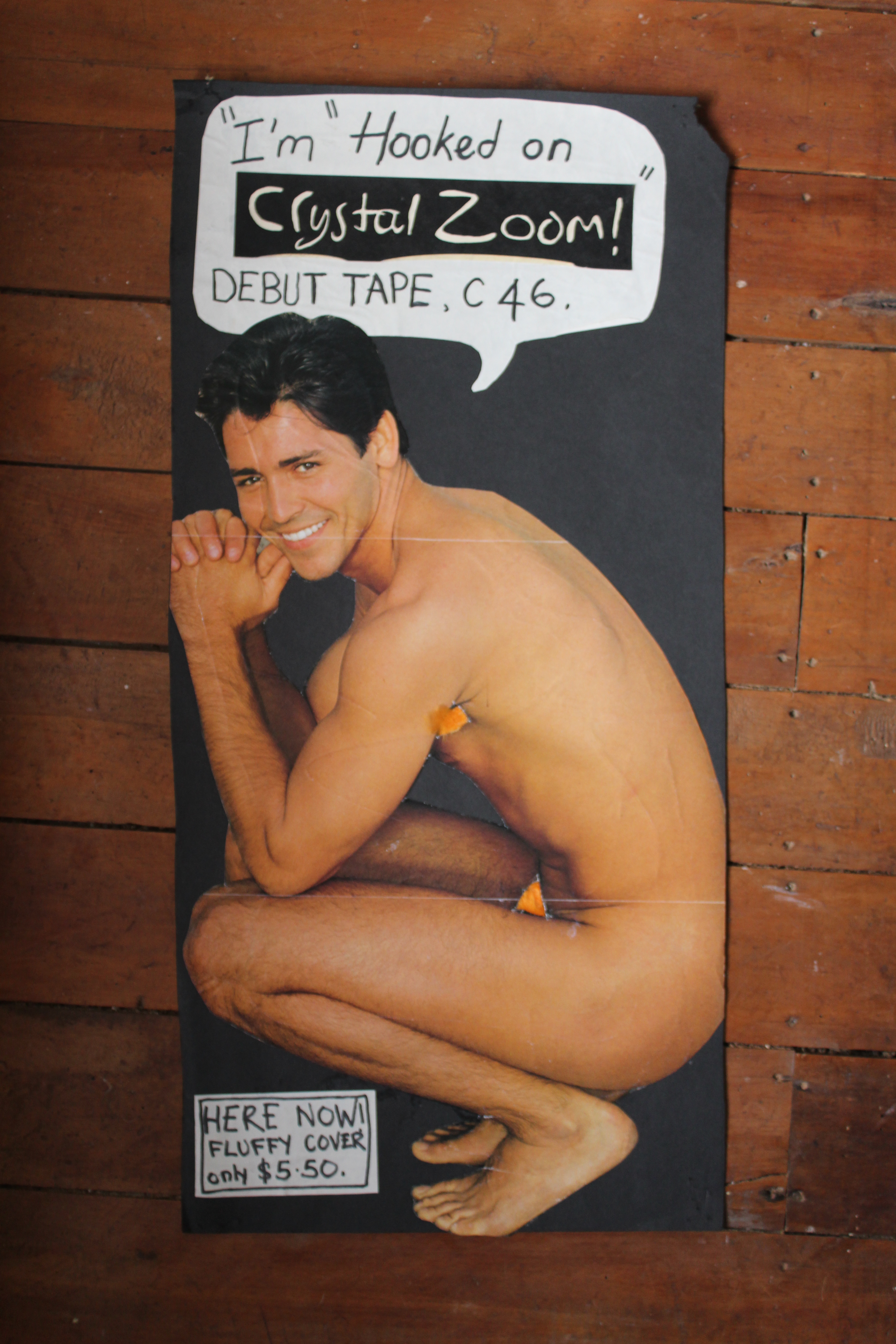 These were a very small series of one-off posters I did using images cut from Cleo magazines of naked me with orange ‘fun fur’ covering their genitals. The cassette tapes themselves came in a furry purse made from the same material.