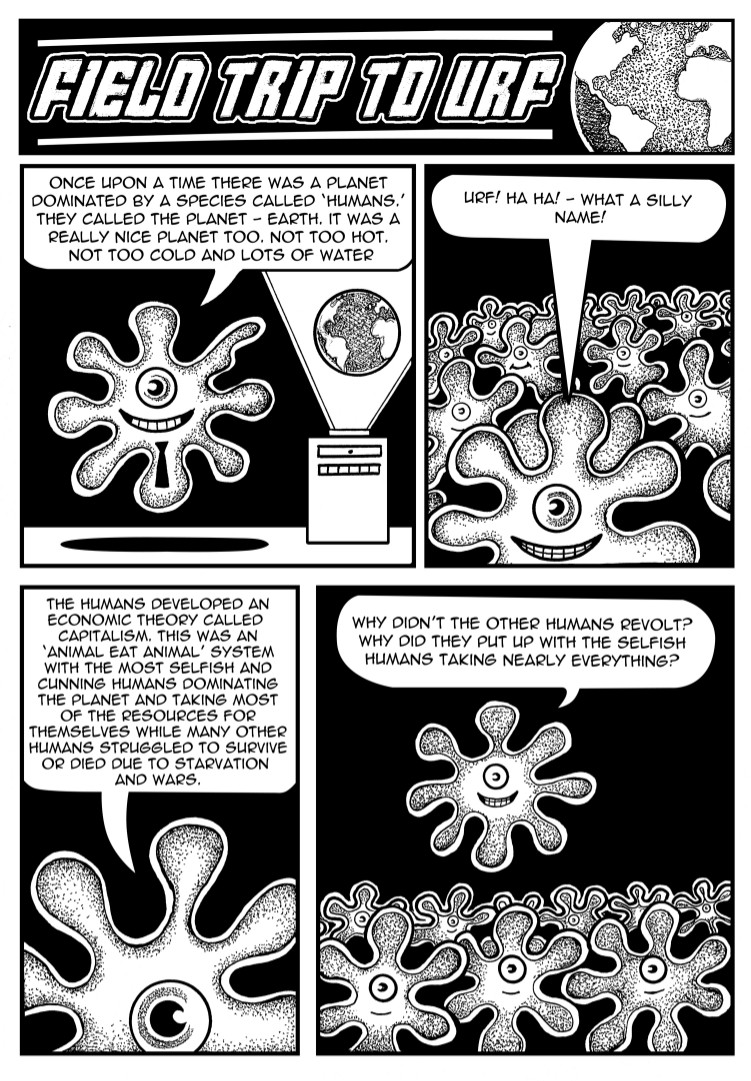 ‘A Field Trip to Urf – is about a bunch of alien children preparing to go on a field trip to a ravaged planet once called Earth. ‘